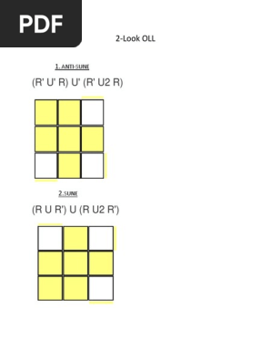 File Rubik S Cube Ll Oll 2 Look Oll 2a Svg Wikimedia Commons from upload.wikimedia.org Solving the 3rd layer's cross. Learn vocabulary, terms and more with flashcards, games and other study tools. In other words, assuming time maps linearly to 'number of algorithms', i'll be cutting my oll time by 1/3 and. 2 look oll is a technique that lets you solve any oll case in 2 algorithms. Orientation of the edges on the u face to make the cross. Digital cheat sheet tutorial on how to solve 3x3x3 rubik's cube. 3 for orienting the edges. There are 10 algorithms to learn in total: